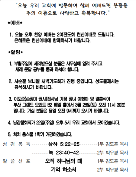 2026년 3월 15일 주일(광고, 주일 낮 설교)
