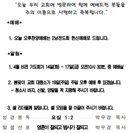 2026년 4월 12일 주일(광고, 주일 낮 설교)