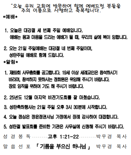 2025년 12월 14일 주일 (광고, 주일 낮 설교)
