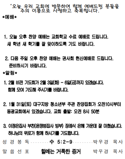 2026년 1월 25일 주일(광고, 주일 낮 설교)