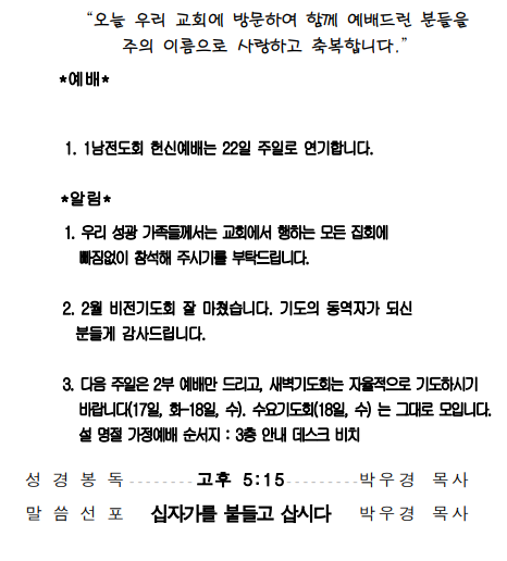 2026년 2월 8일 주일(광고, 주일 낮 설교)
