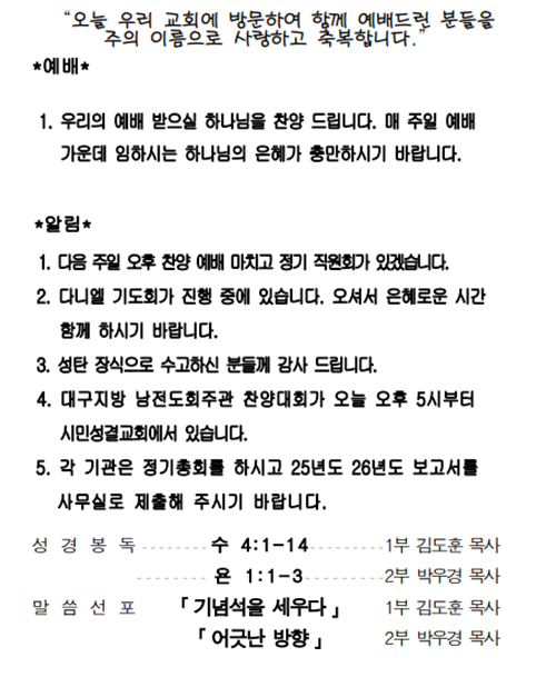 2025년 11월 23일 주일(광고, 주일 낮 설교)