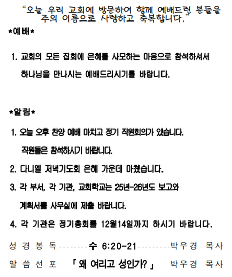2025년 11월 30일 주일(광고, 주일 낮 설교)