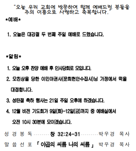 2025년 12월 7일 주일(광고, 주일 낮 설교)