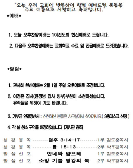 2026년 1월 18일 주일(광고, 주일 낮 설교)