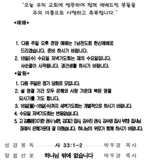 2026년 2월 15일 주일(광고, 주일 낮 설교)